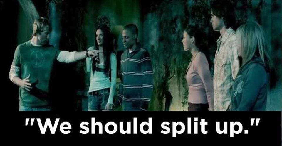 Ooooooo let’s separate. Sweet. Always a smart idea in a movie.