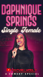 LOS ANGELES (March 26, 2024) – Comedian, actress, writer and content creator Daphnique Springs is self-releasing her stand-up special, DAPHNIQUE SPRINGS: SINGLE FEMALE, on YouTube April 11, 2024. Filmed at the iconic Comedy Cellar in New York, Springs offers her fresh take on the highs and lows of dating, relationship struggles, societal pressures, and more in her first-ever special.
